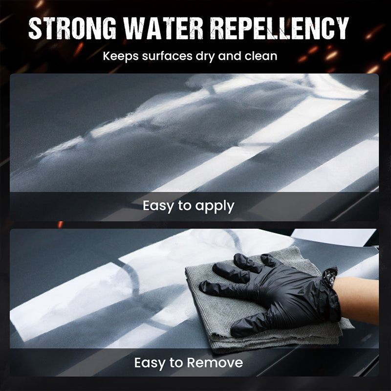 POWERFUL WATER REPELLENCY – Forms a hydrophobic layer that repels water instantly, reducing water spots and streaks. Keeps your car cleaner and drier even in rainy conditions or after washes.