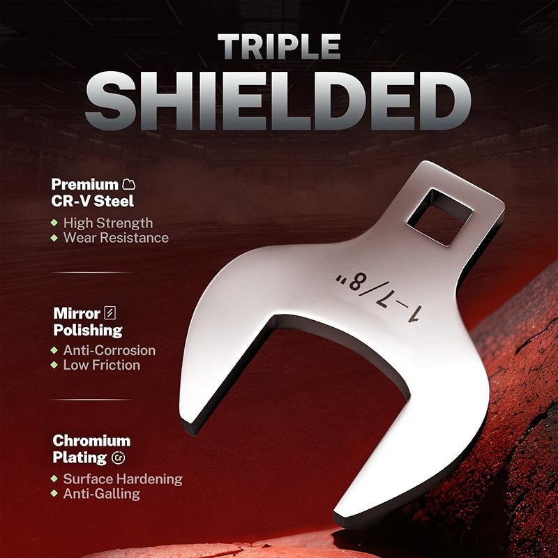 DURABLE CONSTRUCTION: Crafted from heavy-duty Cr-V steel with a mirror chrome finish for exceptional durability, wear resistance, and corrosion protection, making it a reliable addition to any mechanic’s tool collection.