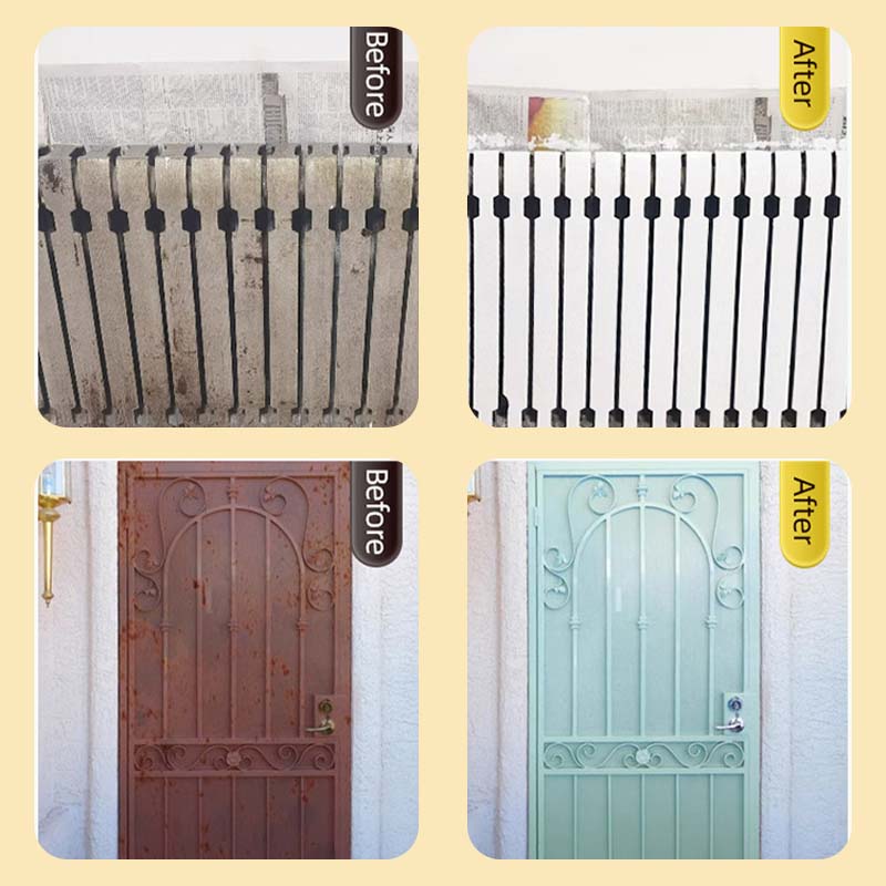 RUST-TO-SHIELD TECHNOLOGYĀ ā Instantly transforms corroded surfaces into durable, protective layers! This paint reacts with rust, converting it into a stable compound while sealing out moisture. No sanding neededāapply directly to stop decay and prevent future oxidation. Ideal for gates, tools, or car parts!